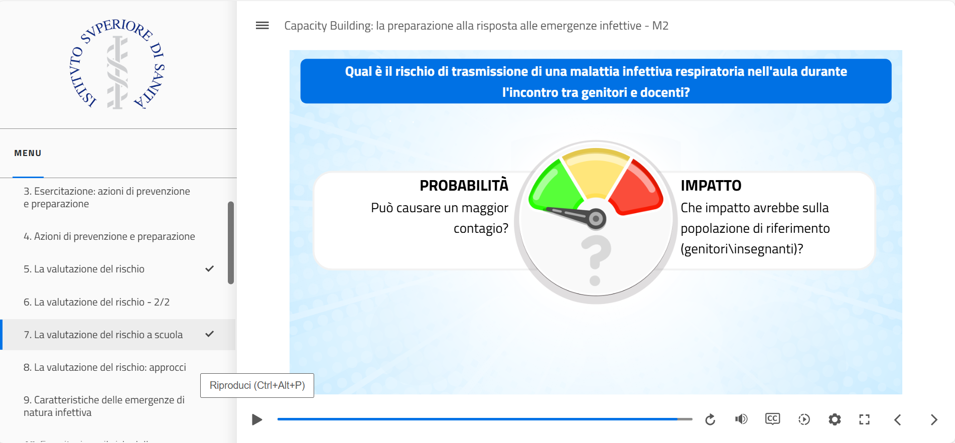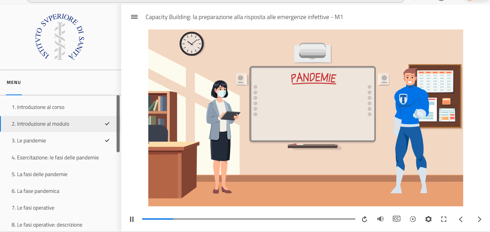 Per l’Istituto Superiore di Sanità abbiamo progettato e realizzato un percorso di digital learning sul Capacity Building nelle emergenze infettive. In questo progetto abbiamo trasformato contenuti tecnico-scientifici complessi in un’esperienza accessibile e quanto più coinvolgente possibile per un pubblico non specialistico.